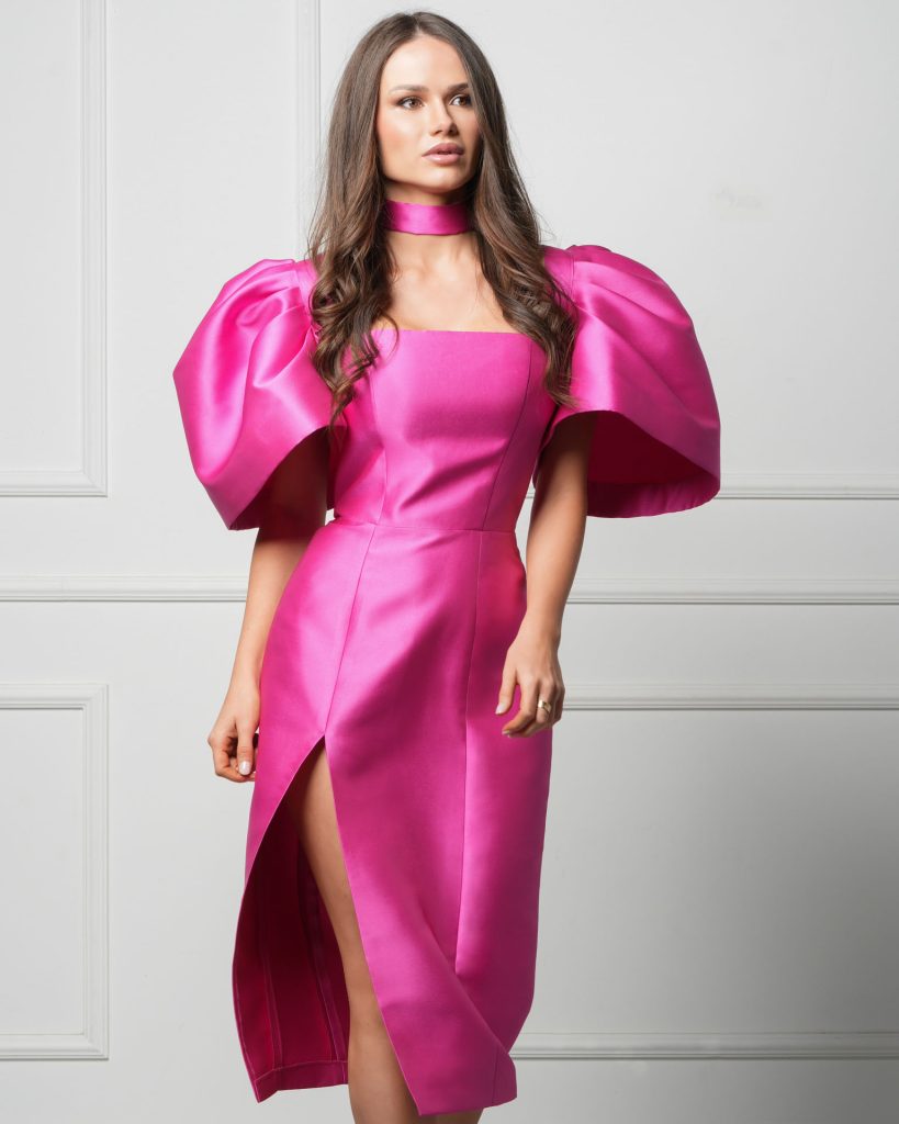 Dresses she creates are romantic but bold, and follow the shape of the female body. The silhouette is feminine and highlights the most beautiful female body’s features. However, inspired by nature, she confidently breaks that shape with floral details, which enriches the dresses with a recognizable authenticity.