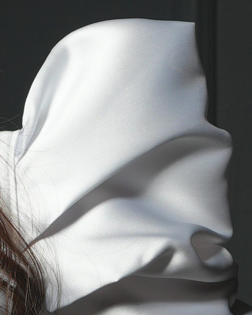 I photographed on a white background with one main large diffuse reflector. Thus, the shadows remained soft, the colors faithful to the original dresses, and the brilliant structure of the material was shown faithfully, without too many details. The photo studio where we had this photo shoot has sharp shadows of natural lighting during one part of the day, so we used natural light for some of the shots.